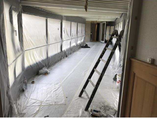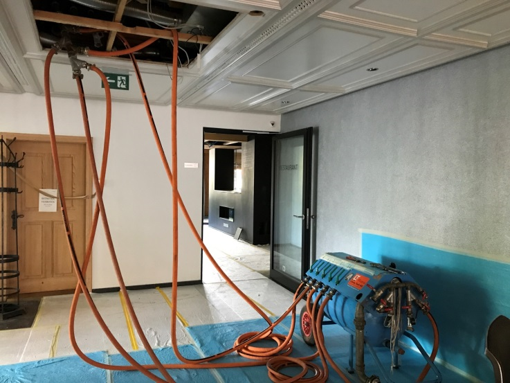 Die beiden Fassaden (Nord- und Ostseite) wurden unter Beobachtung von Mitarbeitern der Denkmalpflege saniert und mit Ölfarbe nach deren strengen (nicht immer verständlichen) Vorgaben frisch gestrichen. Zudem wurden in fast allen Zimmern Holz-Parkettböden verlegt, die Wände weiss gestrichen (definitiv adieu Feng-shui ??), 13 Badezimmer komplett saniert und in allen 44 Zimmern neue Duschkabinen montiert.